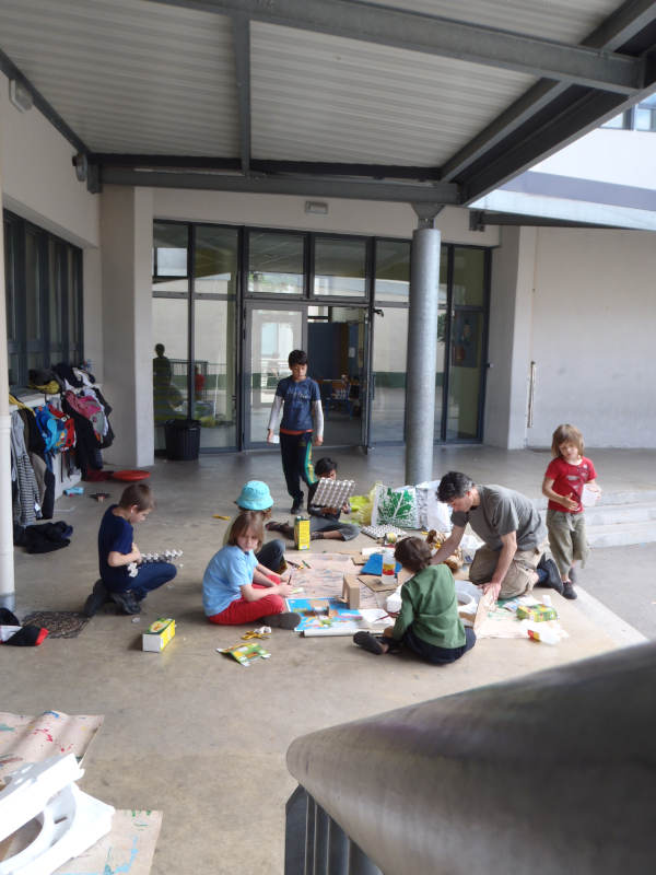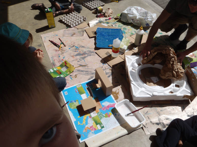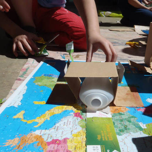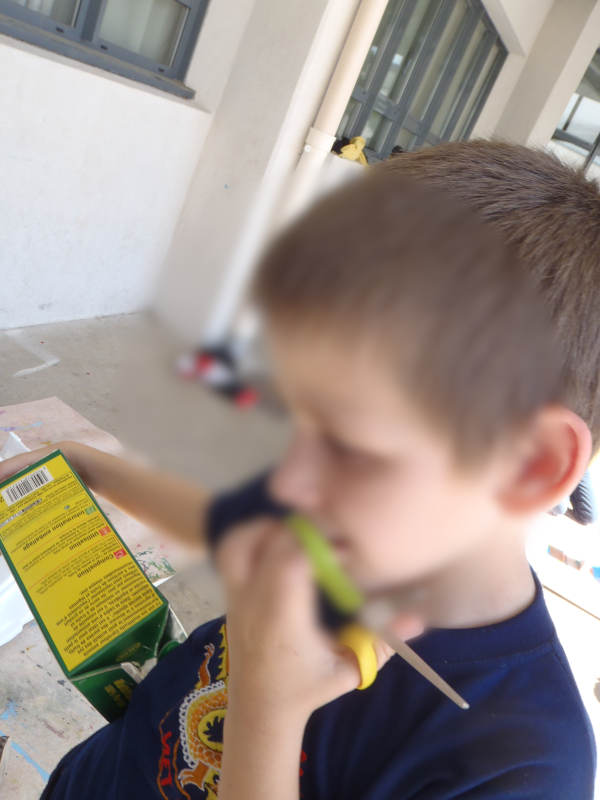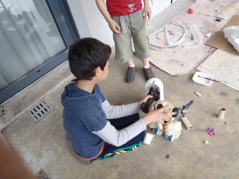 Cet atelier développe l’imaginaire, l’entrainement du maniement de certains outils (ciseau, pistolet à colle, peinture acrylique, collage de photo magazine...), la coopération et l’esprit d’équipe.
